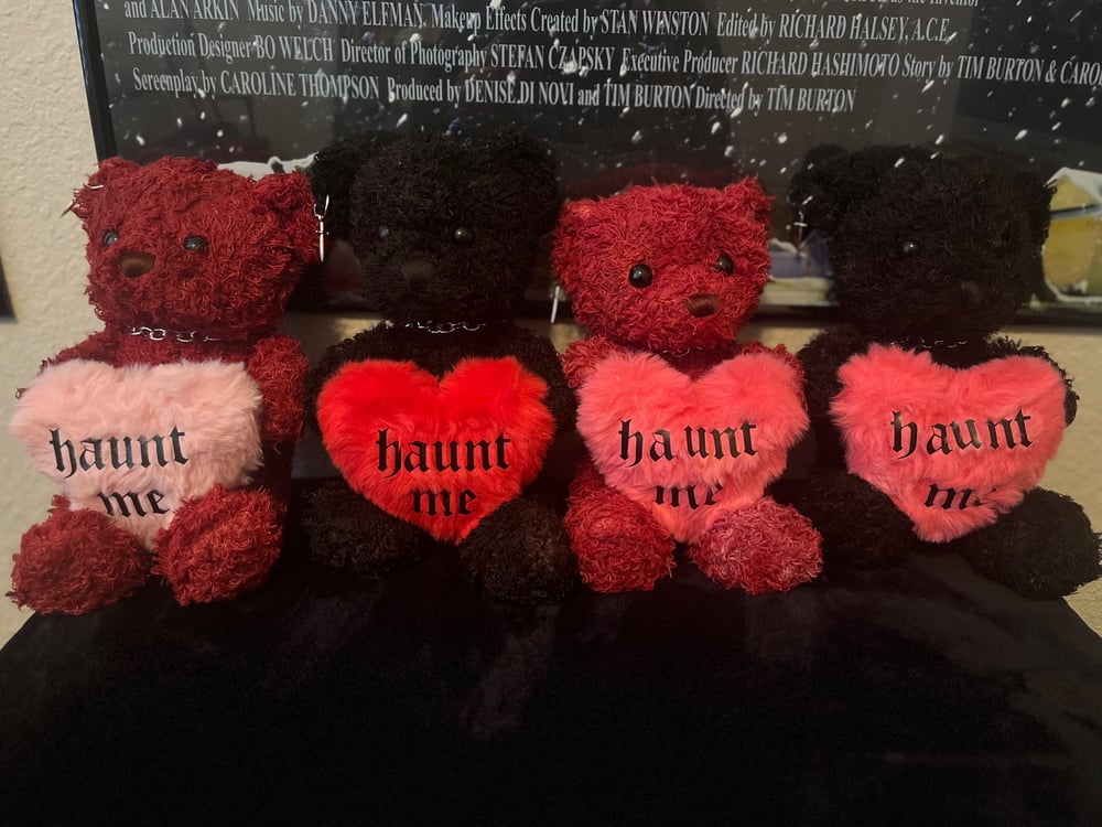 Very special Limited edition "Haunt Me" officially licensed teddy bear. 100% made by hand. 100% hand sewn, hand stuffed, and hand dyed. Comes with an official Haunt Me tag that is hand numbered 1 to 36.